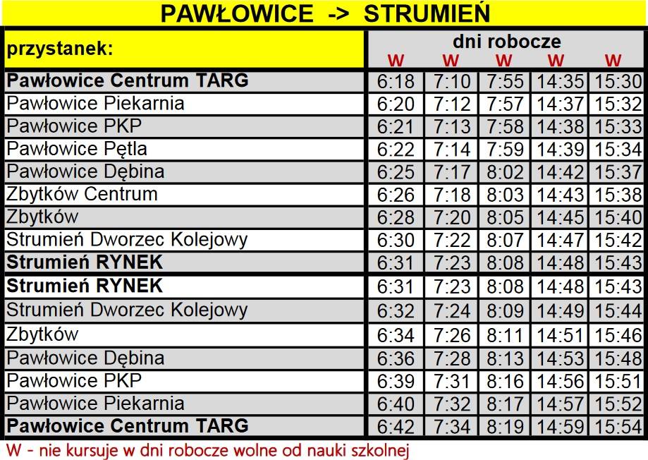 - Realizacja takich kursów na tej linii, pomoże to nie tylko osobom dojeżdżającym do Pawłowic – głównie uczniom szkół średnich, ale również tym, którzy potrzebują dogodnego połączenia z Katowicami – dzięki szerszej ofercie takich kursów realizowanych przez firmy przewozowe w Pawłowicach. Z budżetu gminy Strumień postanowiliśmy przeznaczyć 19 tys. zł na ten cel. Do realizacji kursów na tej linii dokłada się również gmina Pawłowice – mówi Burmistrz Strumienia Anna Grygierek.