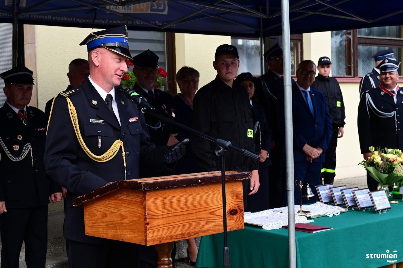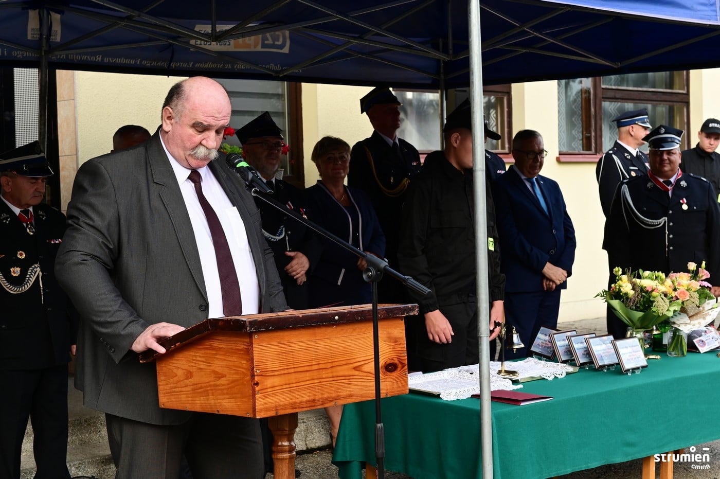 W ceremonii uczestniczyli m.in. Wiceminister Rodziny i Polityki Społecznej Stanisław Szwed, Poseł Małgorzata Pępek, Burmistrz Strumienia Anna Grygierek, Przewodniczący Rady Miejskiej Czesław Greń, przedstawiciele Radnych oraz sołtys Bogusław Wawrzyczek.