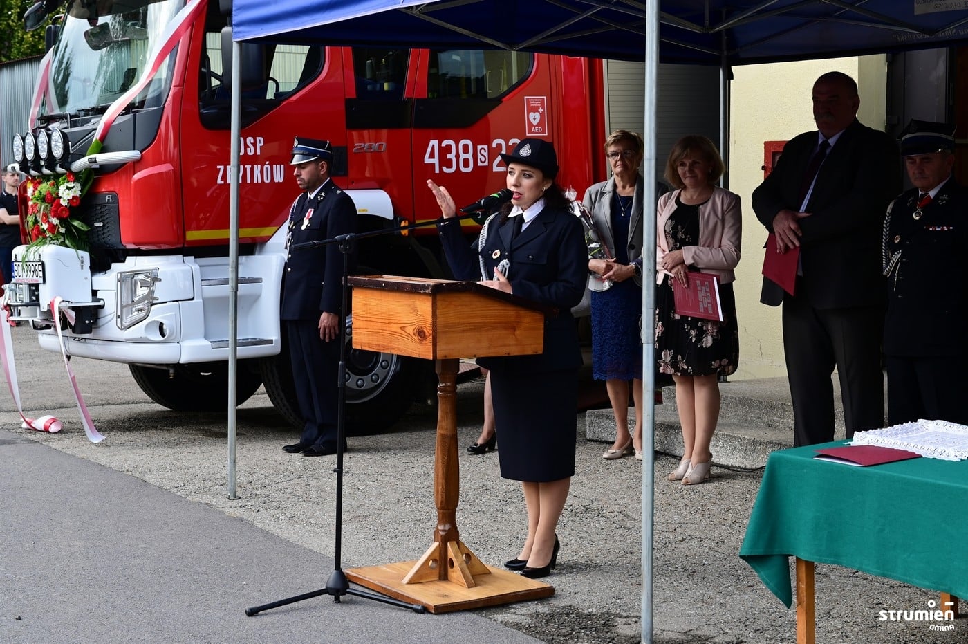 Jestem dumna i szczęśliwa, że udało się doprowadzić do zakupu samochodu dla OSP Zbytków. Szanowni Strażacy – Ochotnicy ! Społeczność gminy Strumień zawsze może liczyć na Waszą gotowość do niesienia pomocy oraz poświęcenie w ochronie życia i mienia. Za tę codzienną – ochotniczą – służbę na rzecz bezpieczeństwa, za tę niezwykle ważną pracę wszystkim strażakom w imieniu swoim jak i mieszkańców gminy dziś z całego serca dziękuję! – mówiła Burmistrz Strumienia Anna Grygierek