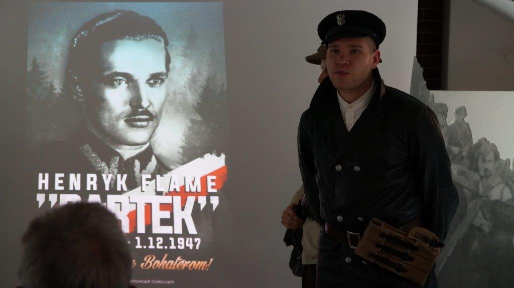 Wystawa poświęcona jest heroicznej walce młodych patriotów ze Zgrupowania Partyzanckiego VII Okręgu Śląskiego Narodowych Sił Zbrojnych pod dowództwem kpt. Henryka Flame „Bartka”. Celem wystawy jest popularyzacja wiedzy o polskiej partyzantce niepodległościowej działającej na naszej Ziemi do 1947 roku. Historyczną wystawę udało się zorganizować w przededniu Narodowego Dnia Pamięci „Żołnierzy Wyklętych” przypadającego na 1 marca. Na wernisażu obecni byli żywi świadkowie trudnych czasów, prezentowane były również krótkometrażowe filmy zrealizowane przez Grupę Rekonstrukcji Historycznej Beskidy z Bielska-Białej. Specjalnie na tą okazję Pani Bernadeta Krawiec z Amatorskiej Grupy Twórczej Strumień stworzyła wiersz pt. „Żołnierze wyklęci”, który następnie wyrecytowała zgromadzonym. Zarówno wspomnienia jak i filmy dały wszystkim obecnym na wernisażu wymowny obraz tego trudnego okresu w polskiej historii.