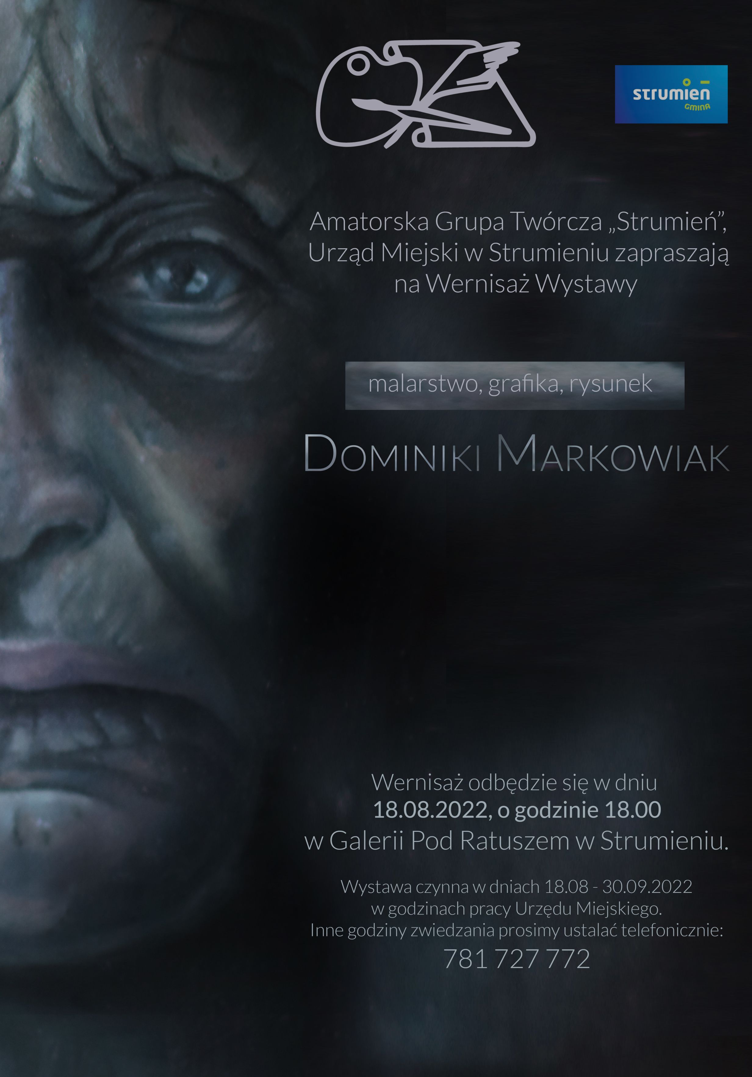 Wystawę w Galerii Pod Ratuszem będzie można zobaczyć do 30.09.2022 r. w godzinach pracy Urzędu Miejskiego w Strumieniu. Inne godziny zwiedzania prosimy ustalać telefonicznie pod nr 781 727 772