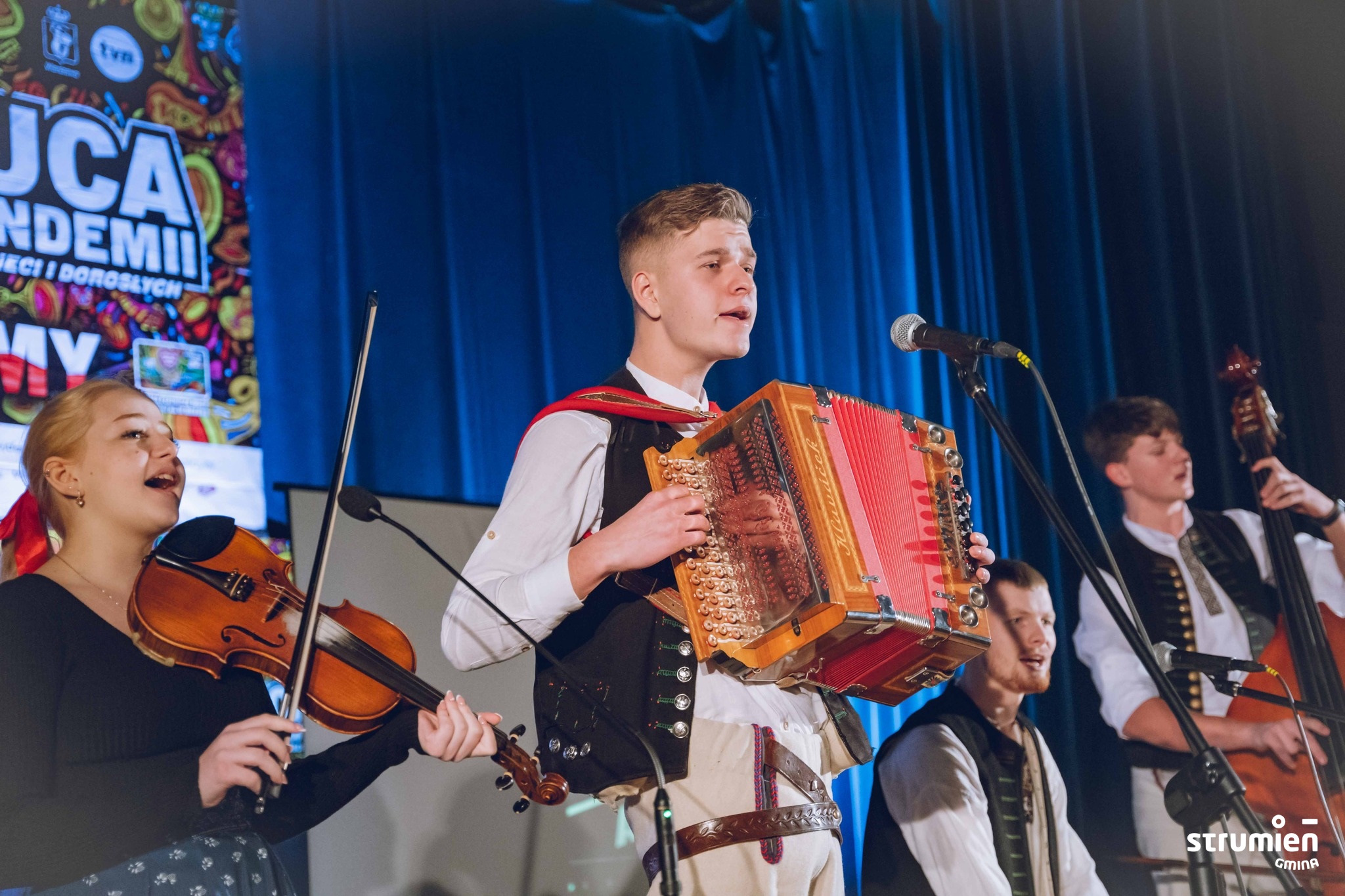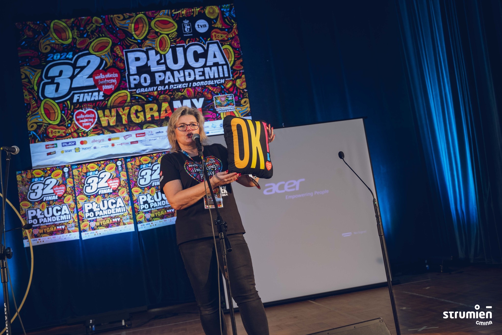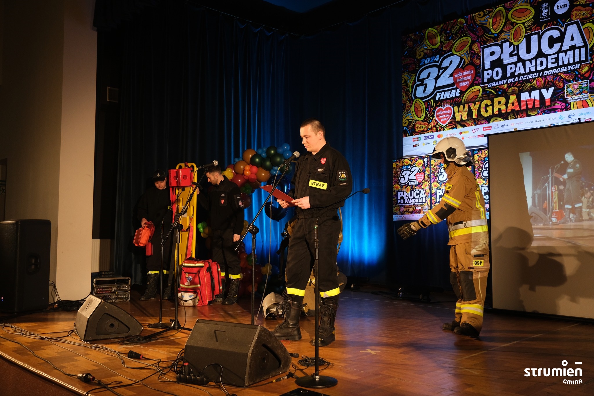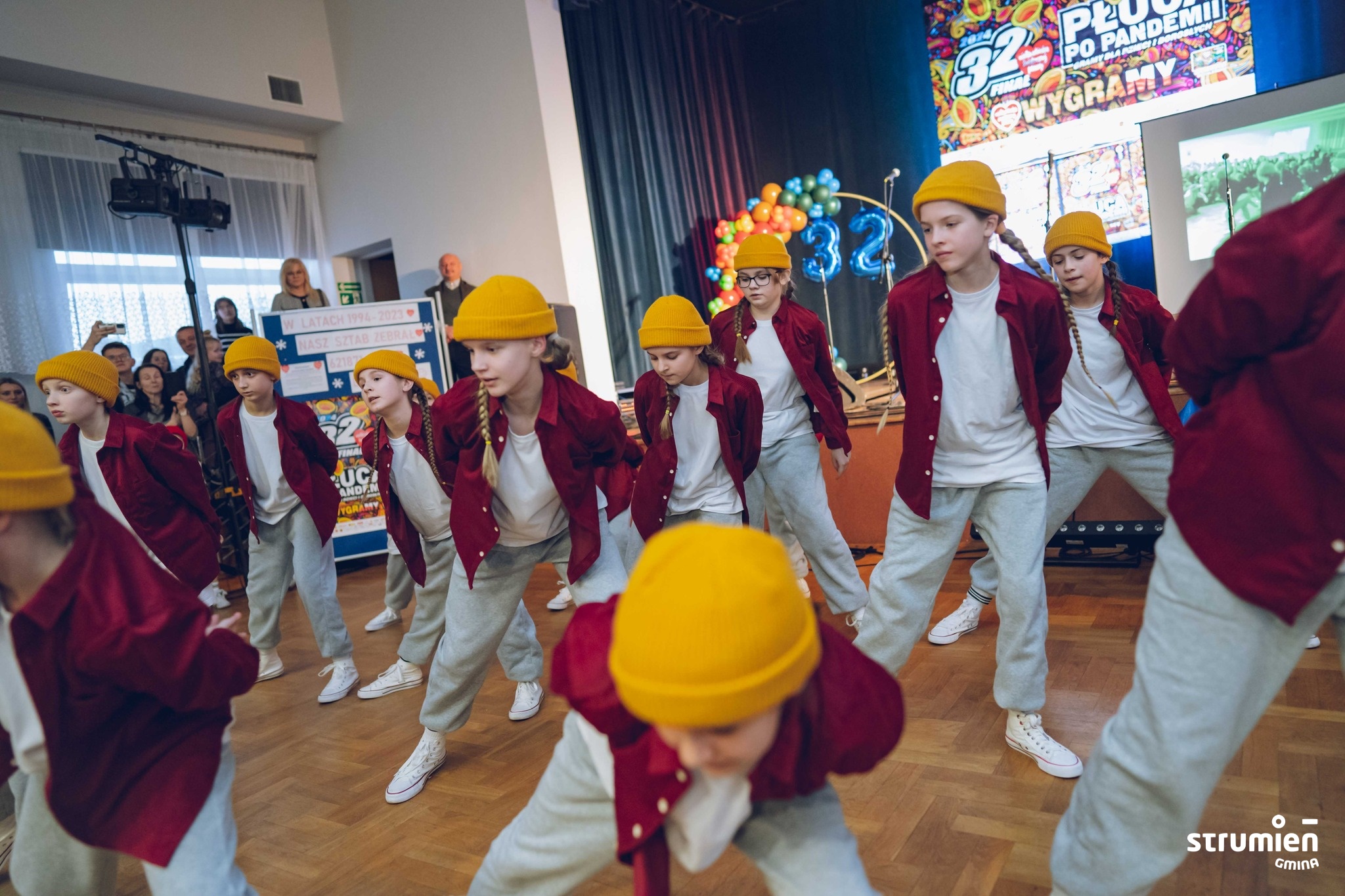 Dziękujemy wolontariuszom, wszystkim, którzy postarali się o dobry nastrój i atmosferę podczas finału m.in. grupom tanecznym prowadzonym w Miejsko-Gminnym Ośrodku Kultury w Strumieniu przez Karolinę Głowińską, przedszkolakom, zespołowi „Młodzi Gniywni” z Jaworzynki, druhom z OSP Pruchna.
