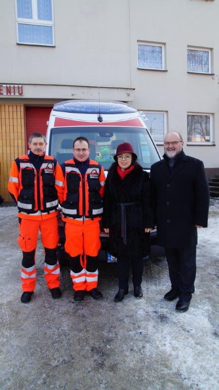 Uroczystego przekazania karetki dokonali Jan Kawulok Dyrektora Cieszyńskiego Pogotowia Ratunkowego, Stanisław Szwed Wiceminister Rodziny, Pracy i Polityki Społecznej oraz Wicewojewoda Śląski Jan Chrząszcz.