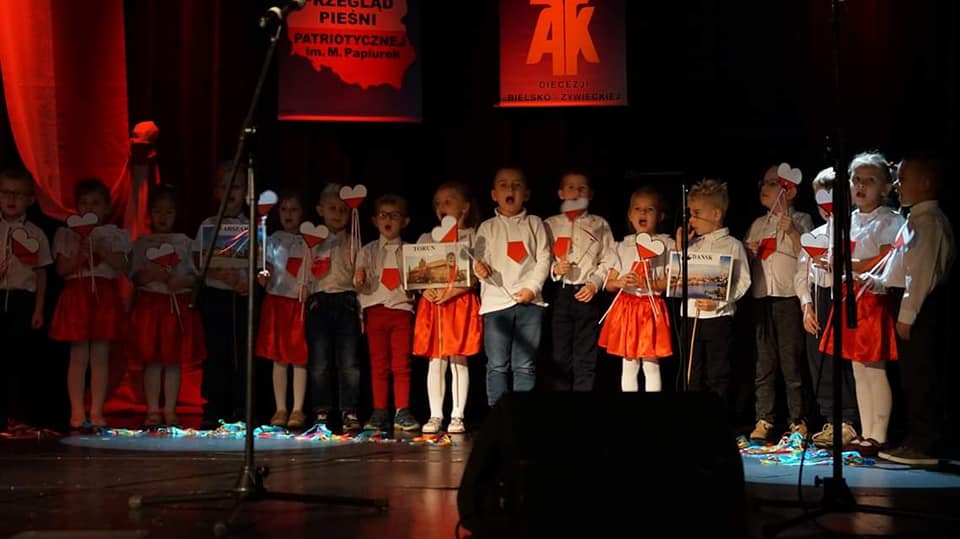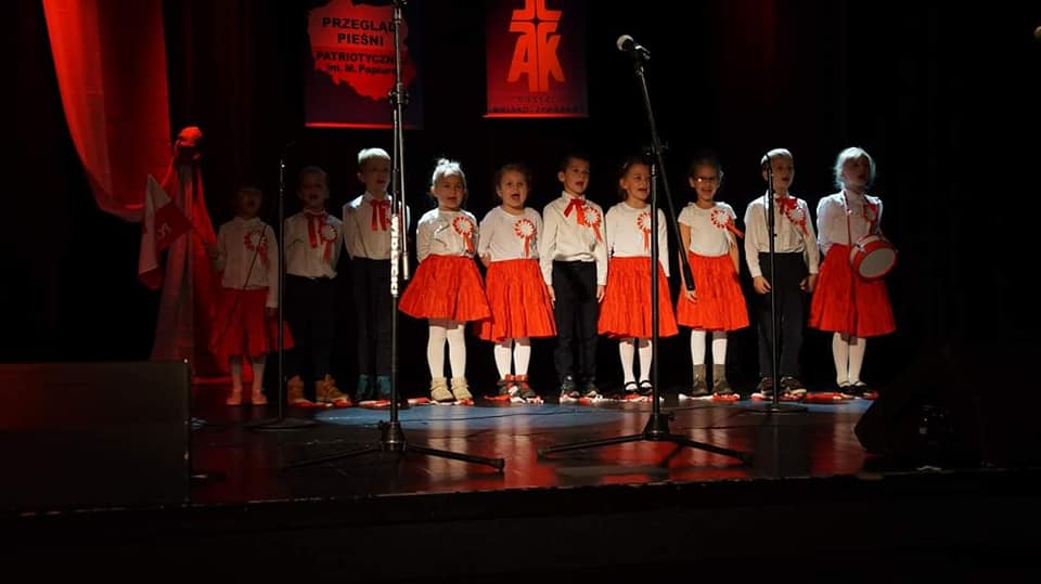 Uczestnicy pięknym spiewem uczcili 100-lecie odzyskania przez Polskę Niepodległości i udowodnili że młode pokolenie zna i kocha swoją ojczyznę.