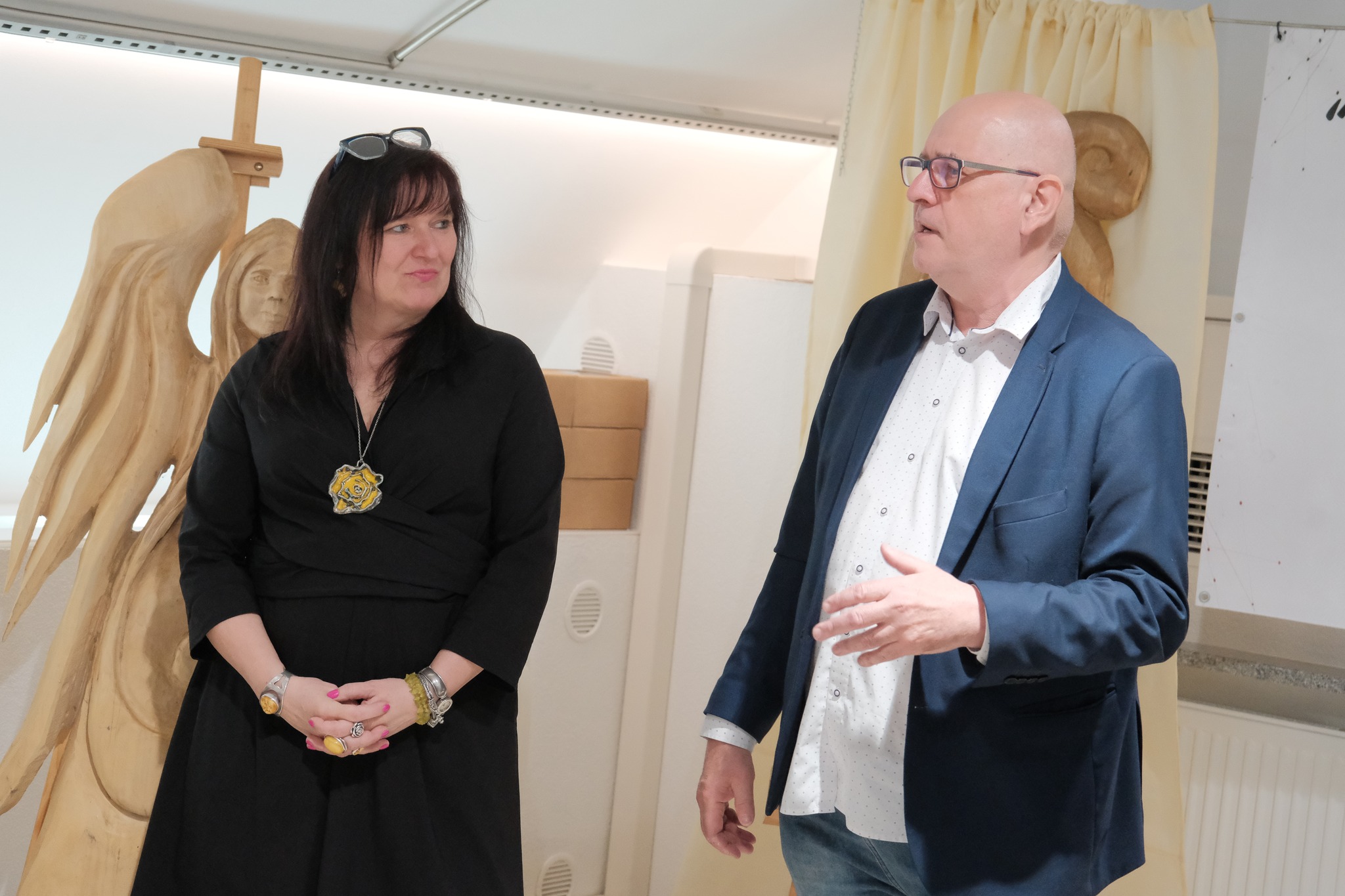 Drewniane i ceramiczne rzeźby inspirowane aniołami oraz postaciami z legend zachwyciły gości. Magiczną atmosferę wydarzenia dopełniły wiersze zaprezentowane przez Sabinę Bebek i Dorotę Gustyn.