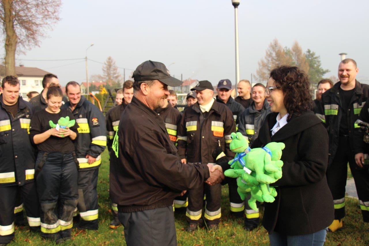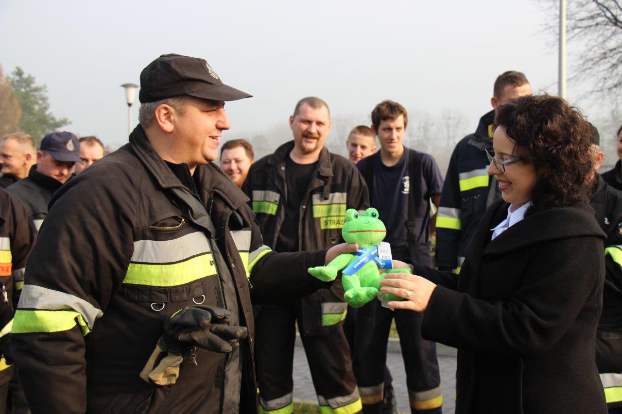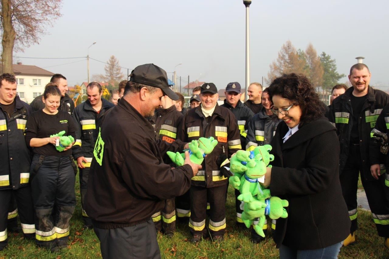 Upominek z gminy Strumień otrzymała również jednostka Państwowej Straży Pożarnej ze Skoczowa. - Maskotki bardzo się przydadzą, używamy je szczególnie w wypadkach komunikacyjnych w sytuacji, gdy w wypadku biorą udział dzieci. Często się zdarza, że jest są zestresowane i płaczą. Kiedyś otrzymywaliśmy takie maskotki z Komendy Wojewódzkiej, a teraz miła niespodzianka ze Strumienia, która na pewno niestety prędzej czy później się przyda. Kiedy dziecko znajdzie się w trudnej sytuacji na pewno się ta żabka będzie pociechą – mówi st.kpt. Dariusz Walek, Dowódca Jednostki Ratowniczo-Gaśniczej w Skoczowie.