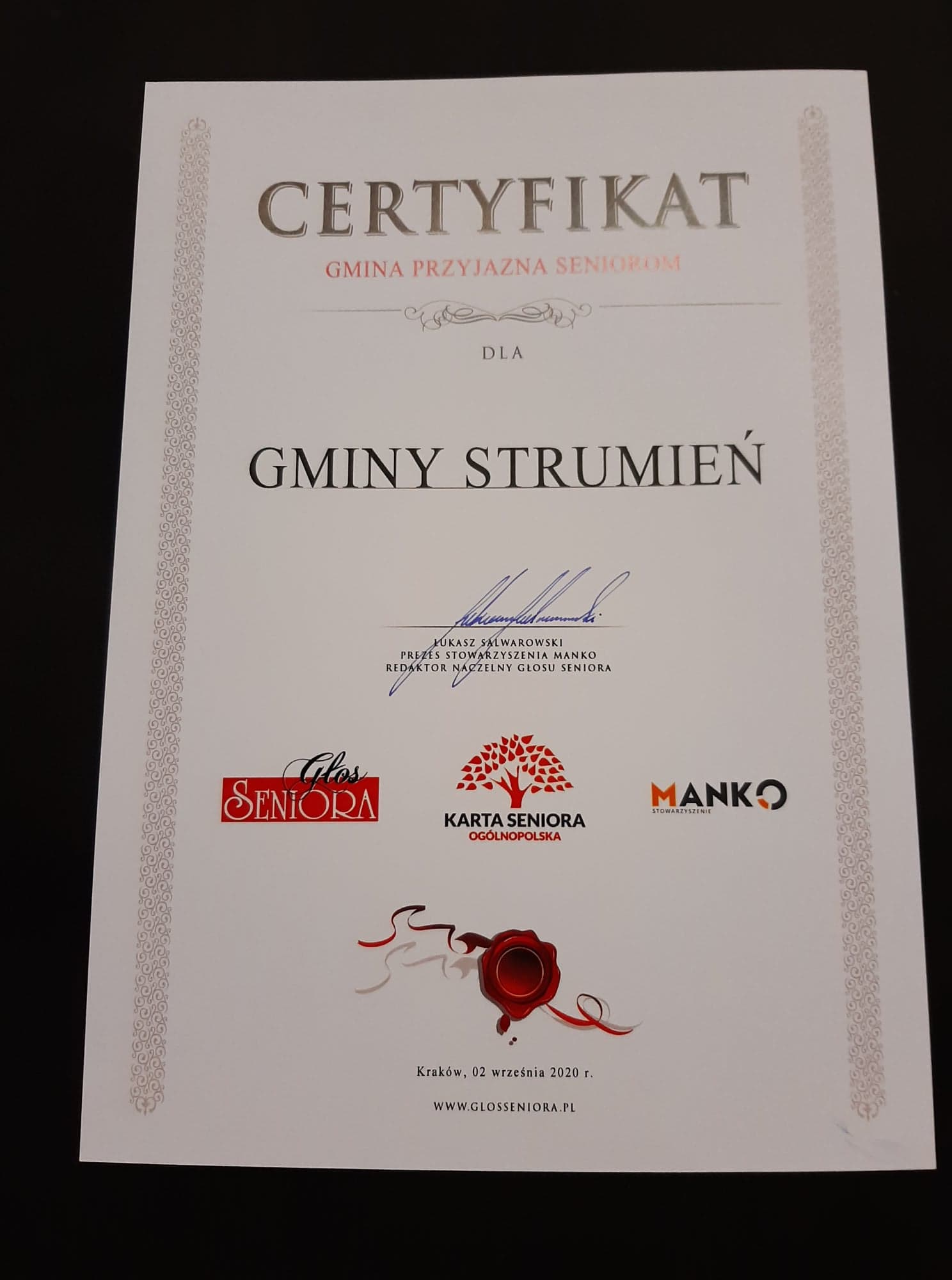 Gmina Strumień przystąpiła do programu „Gmina Przyjazna Seniorom i Ogólnopolska Karta Seniora” podpisując porozumienie o partnerstwie ze Stowarzyszeniem MANKO z Krakowa, wydawcą magazynu „Głos Seniora”. Oznacza to, że każdy mieszkaniec Gminy, który ukończył 60 lat będzie mógł ubiegać się o wydanie bezpłatnej karty upoważniającej do korzystania ze zniżek i licznych promocji oferowanych przez partnerów w całej Polsce.
