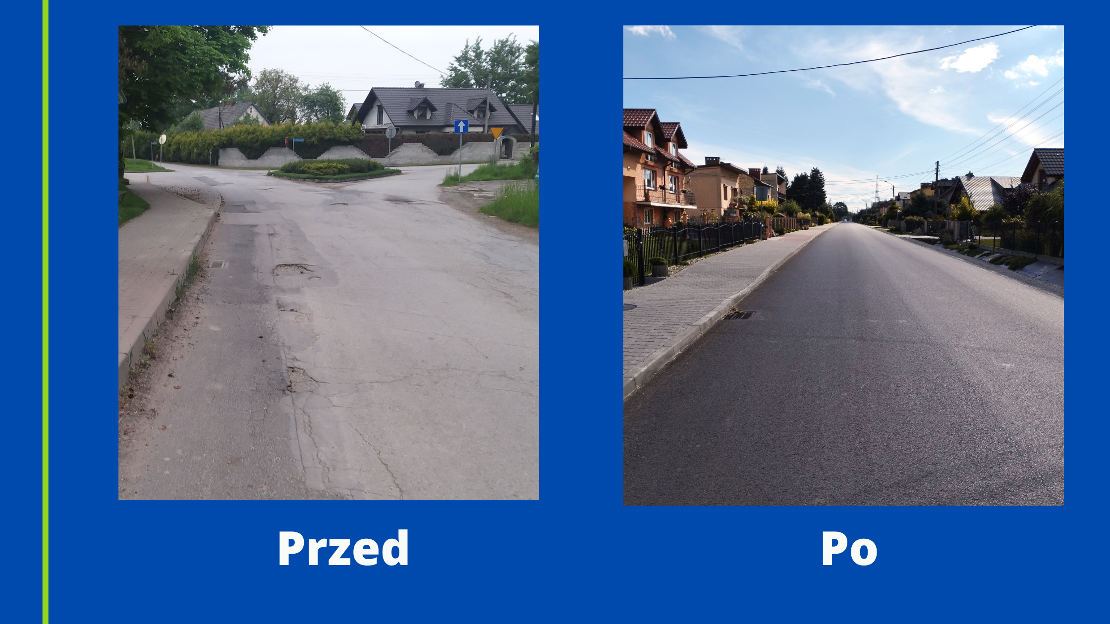 W ramach zadania wykonana została nowa nawierzchnia jezdni, remont poboczy i rowów oraz wymieniono podbudowę i nawierzchnię z kostki betonowej chodnika i zatoki autobusowej. Wymieniono także kanalizację deszczową w tym studnie rewizyjne, oraz wpusty deszczowe wraz z przykanalikami.