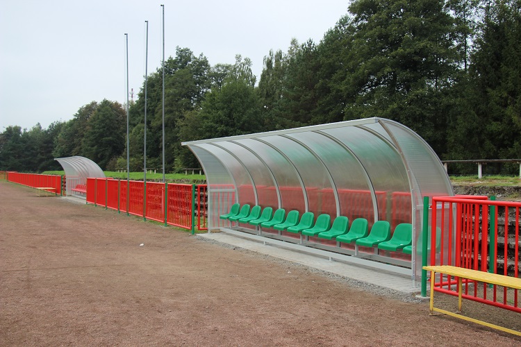 - elementy małej architektury: ławki z panelem solarnym (solar energy) wyposażone w moduły ładowania telefonów, Wi-Fi i stojak na rowery oraz segregacyjne kosze na śmieci, zmianę lokalizacji ławek dla zawodników rezerwowych (strona wschodnia).