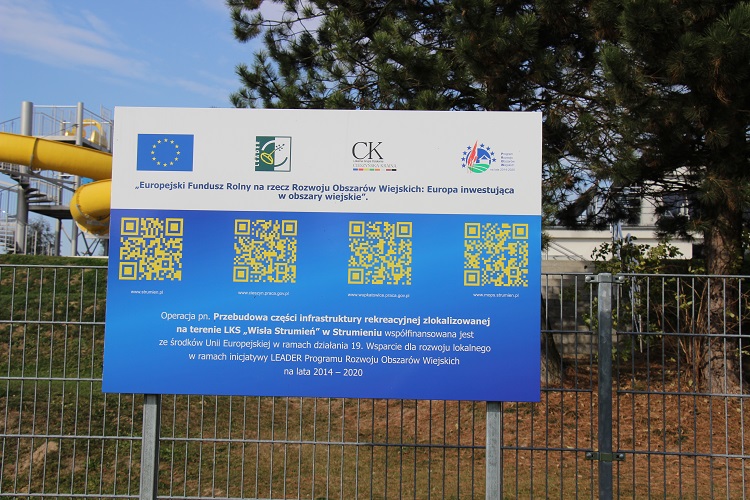 Została ponadto zamieszczona tablica informacyjna wolnostojąca zawierająca kody QR, z linkami do stron internetowych m.in. Powiatowego Urzędu Pracy w Cieszynie, Wojewódzkiego Urzędu Pracy w Katowicach i Miejskiego Ośrodka Pomocy Społecznej w Strumieniu.