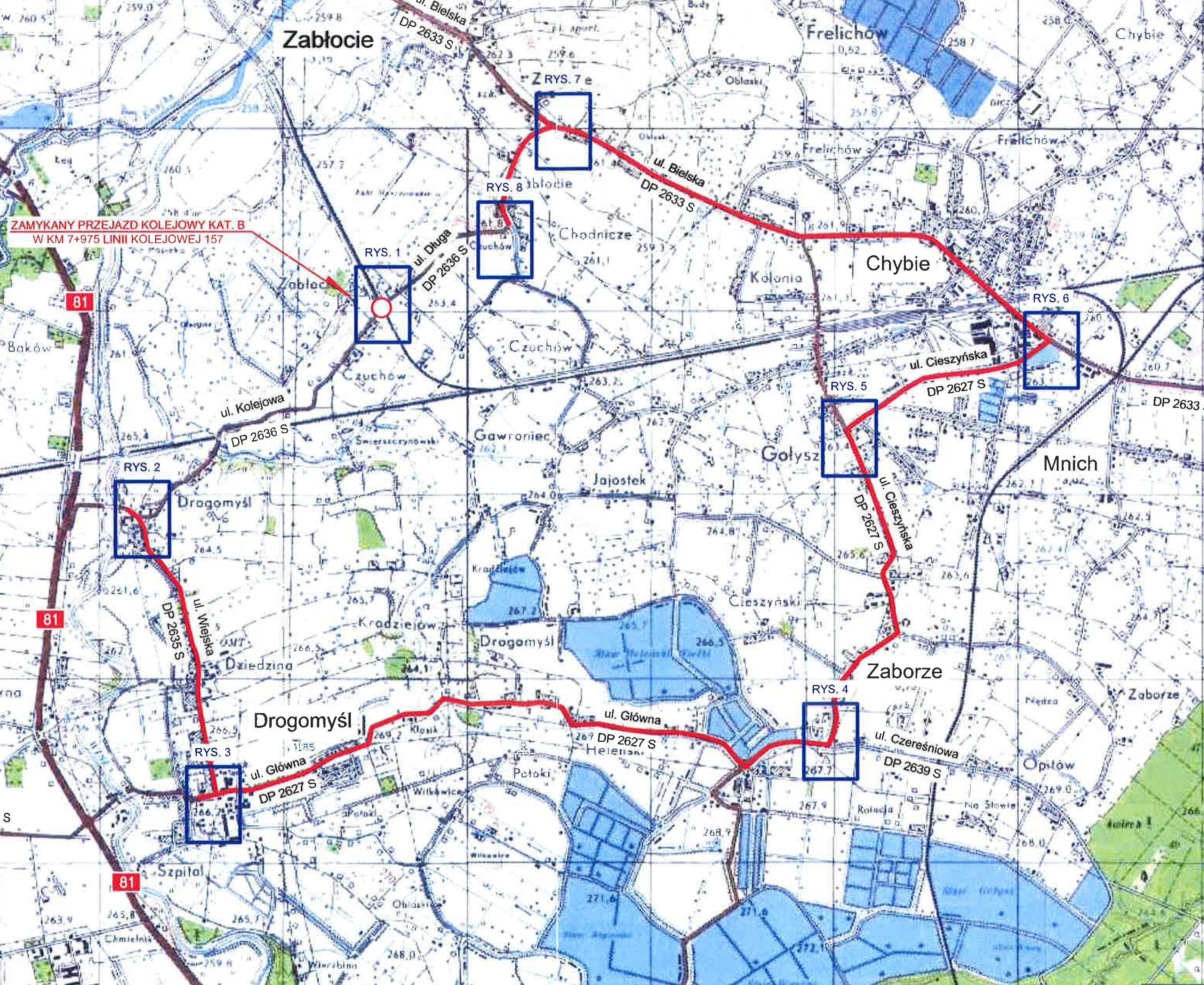 Wykonawca zadania pn. " Prace na liniach kolejowych na odcinku Chybie - Żory - Rybnik, w związku z planowaną realizacja robót budowlanych, uprzejmie informuje, że w dniach 8-12.10.2018 r. (5 dni) zostanie zamknięty ruch kołowy w obrębie przejazdu kolejowego w ciagu ulicy Długiej w Zabłociu. Ruch Pieszy zostanie utrzymany.