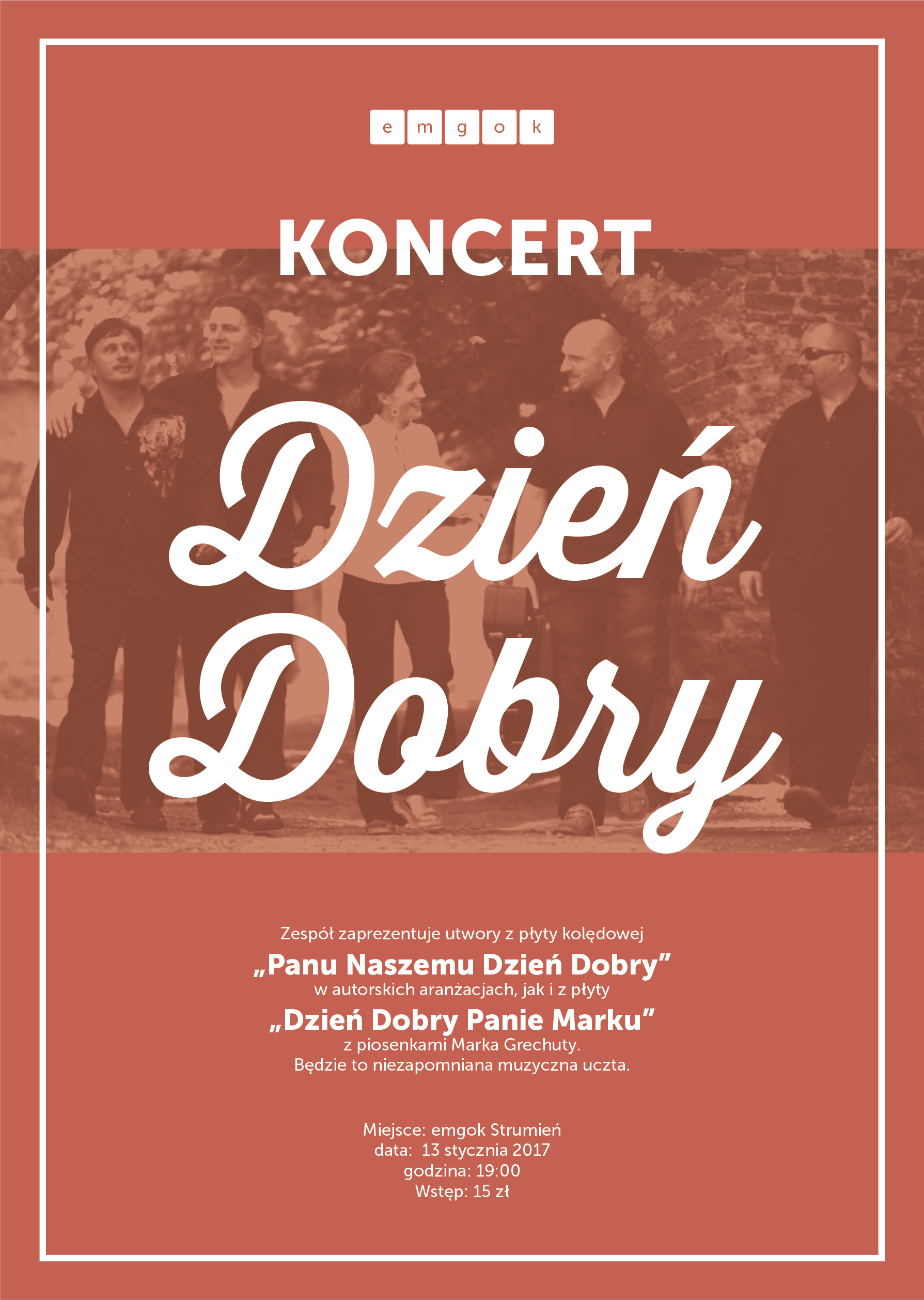 Miejsko-Gminny Ośrodek Kultury w Strumieniu zaprasza na koncert w wykonaniu zespołu Dzień Dobry „Panu Naszemu Dzień Dobry”.