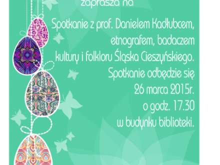 Miejska Biblioteka Publiczna w Strumieniu serdecznie zaprasza na spotkanie z prof. Danielem Kadłubcem- etnografem, badaczem kultury i folkloru Śląska Cieszyńskiego. Spotkanie odbędzie się 26 marca br. o godz. 17:30 w budynku biblioteki.
