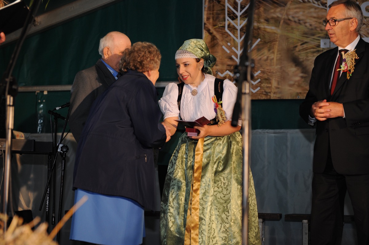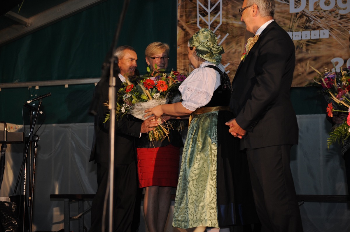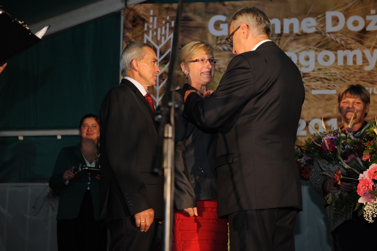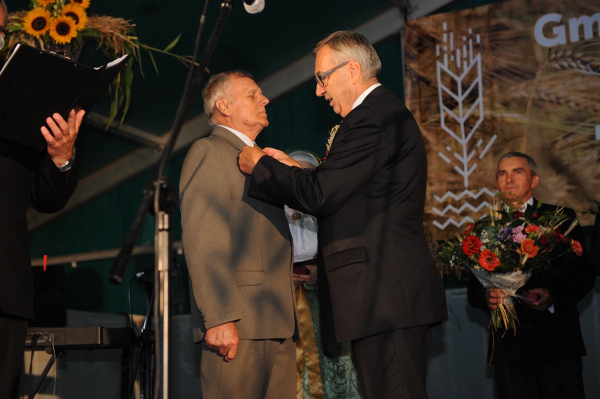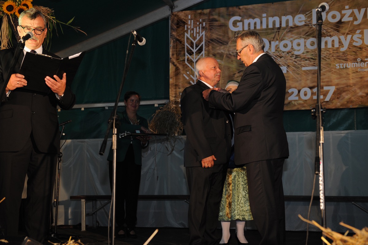 Podczas dożynek Wiceminister Rodziny, Pracy i Polityki Społecznej Stanisław Szwed wraz z Burmistrz Strumienia Anną Grygierek wręczyli odznaczenia zasłużonym.