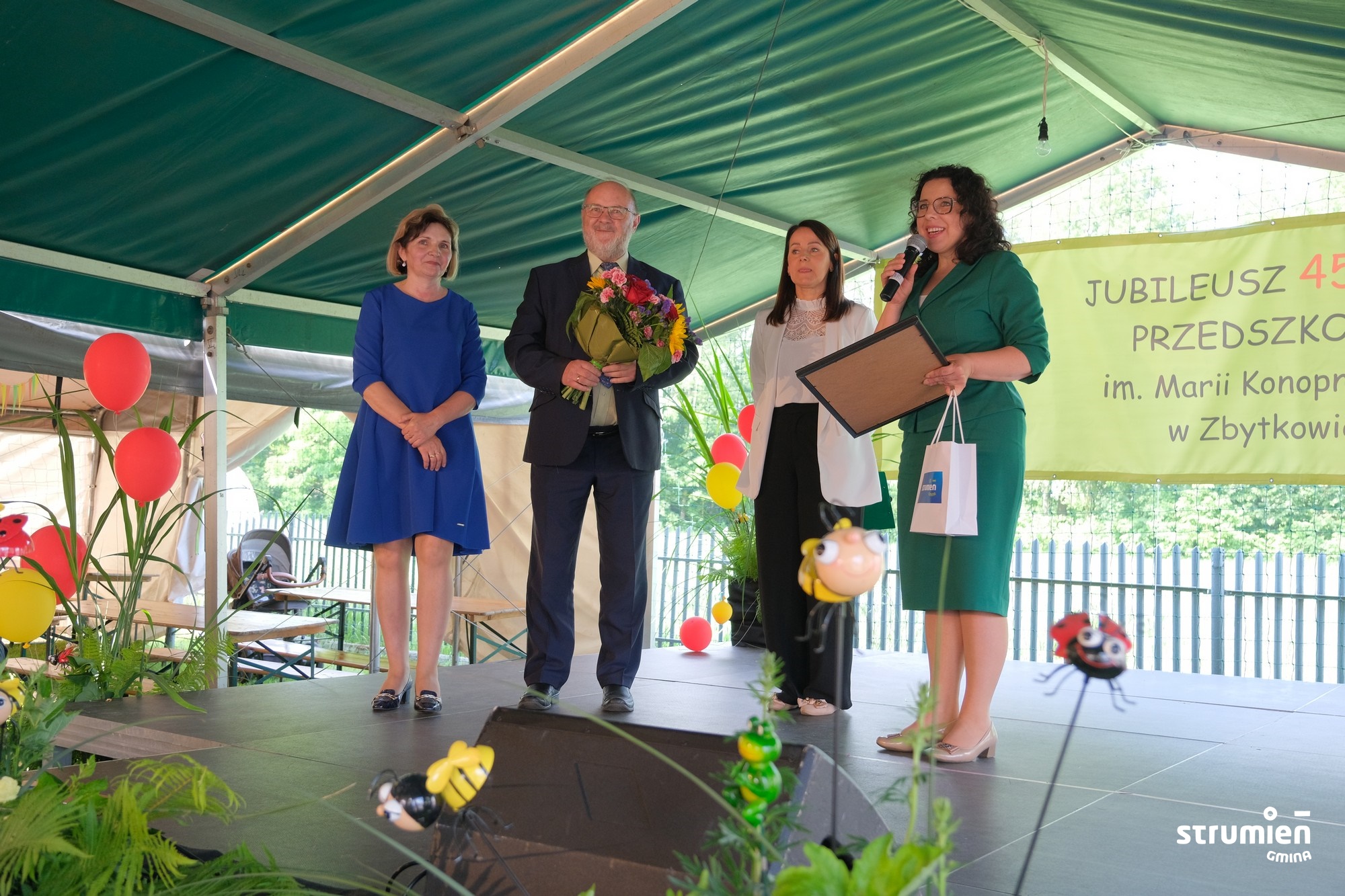 W tym roku obchodzimy jubileusz 45-lecia Przedszkola im. Marii Konopnickiej w Zbytkowie. Uroczystości odbyły się 29 maja, a ich centralnym punktem był festyn rodzinny zorganizowany na terenie OSP Zbytków. Wydarzenie przyciągnęło wielu gości, wspólnie ze społecznością przedszkola świętowali m.in. Burmistrz Strumienia, Anna Grygierek, Radne Powiatowe Sonia Krzempek i Lilla Salchna Brzoza, Przewodniczący Rady Miejskiej, Czesław Greń, Sołtys Bogusław Wawrzyczek, a także przedstawiciele lokalnych organizacji i instytucji.