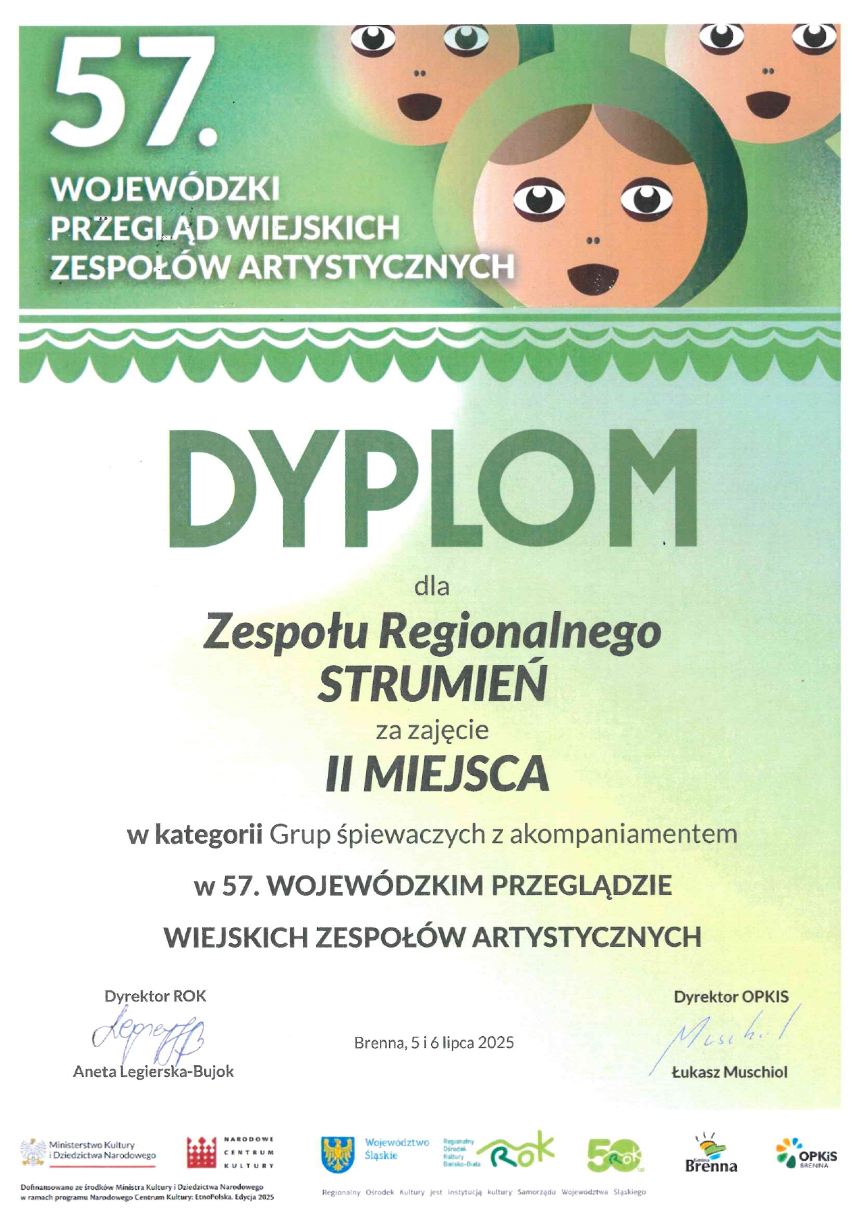 57 .Wojewódzki Przegląd Wiejskich Zespołów Artystycznych w Brennej zakończył się dla naszej gminy dużym sukcesem! II miejsce w kategorii grup śpiewaczych z akompaniamentem zdobył Zespół Regionalny Strumień, który oczarował jury nie tylko muzyką, ale i wyjątkową oprawą wizualną. Stroje regionalne, charakterystyczne dla Śląska Cieszyńskiego, nadały występowi niepowtarzalnego uroku i podkreśliły jego autentyczność.