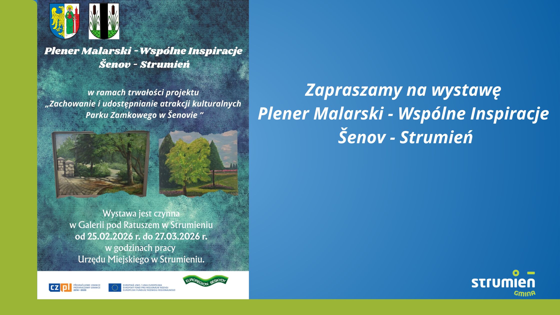 Ekspozycja pt. „Plener Malarski - Wspólne Inspiracje Šenov - Strumień” stanowi efekt twórczej pracy artystów uczestniczących w projekcie realizowanym wspólnie przez partnerów z Šenov i Strumień.