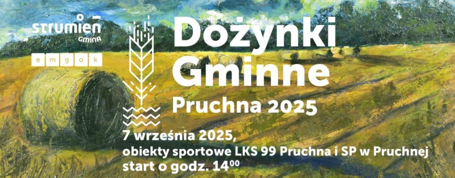 Burmistrz Strumienia Anna Grygierek wraz z Komitetem Organizacyjnym Dożynek Gminnych w Pruchnej oraz Miejsko-Gminnym Ośrodkiem Kultury w Strumieniu serdecznie zapraszają na Dożynki Gminne – Pruchna 2025!