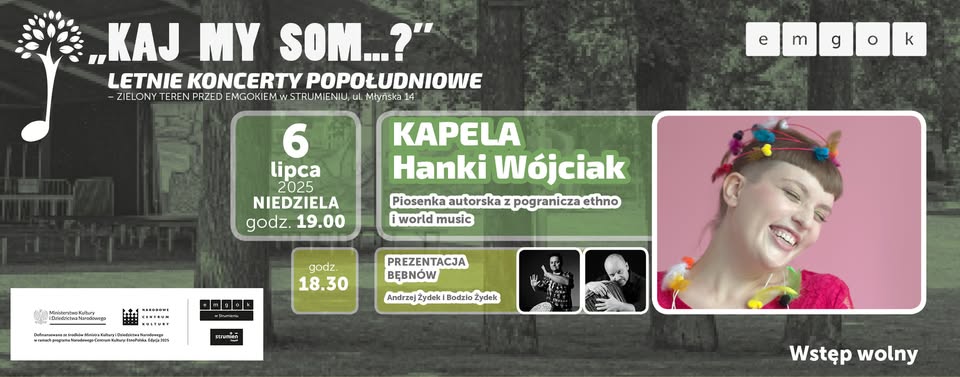 Serdecznie zapraszamy na tegoroczną edycję letnich koncertów popołudniowych „KAJ MY SOM…?” Czekają nas występy wyjątkowych artystów wykonujących muzykę folkową, ethno i world music. Nowością tegorocznej odsłony będą prezentacje niezwykłych, osobliwych i unikatowych instrumentów, które poprzedzą każdy koncert. Wspólnie – poprzez muzykę i jej dźwiękowe bogactwo – odkrywać będziemy kultury różnych zakątków świata.