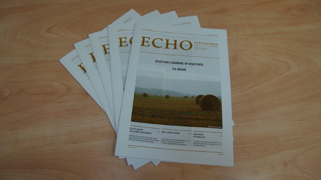 Zachęcamy do zapoznania się z najnowszym numerem bezpłatnego kwartalnika „Echo Strumienia”. W tym numerze znalazła się m.in. relacja z Dożynek Gminnych w Bąkowie. Warto również przeczytać wywiad z Jarosławem Głowinkowskim z Drogomyśla, który mówi o trudach treningów, maratonach i radości jaką wyzwala bieganie, a także dowiedzieć się więcej o działalności Kola Gospodyń Wiejskich w Zabłociu.