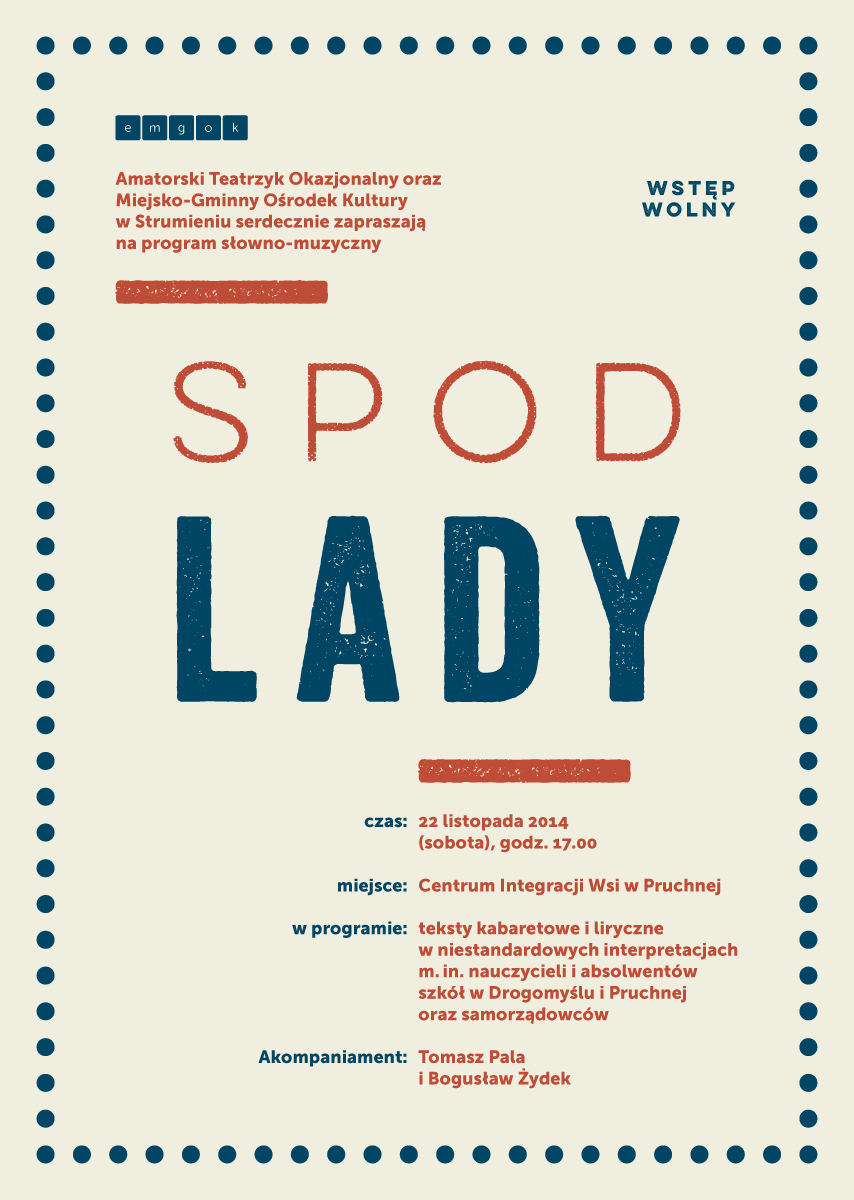 Amatorski Teatrzyk Okazjonalny oraz Miejsko-Gminny Ośrodek Kultury w Strumieniu serdecznie zapraszają na program słowno-muzyczny: