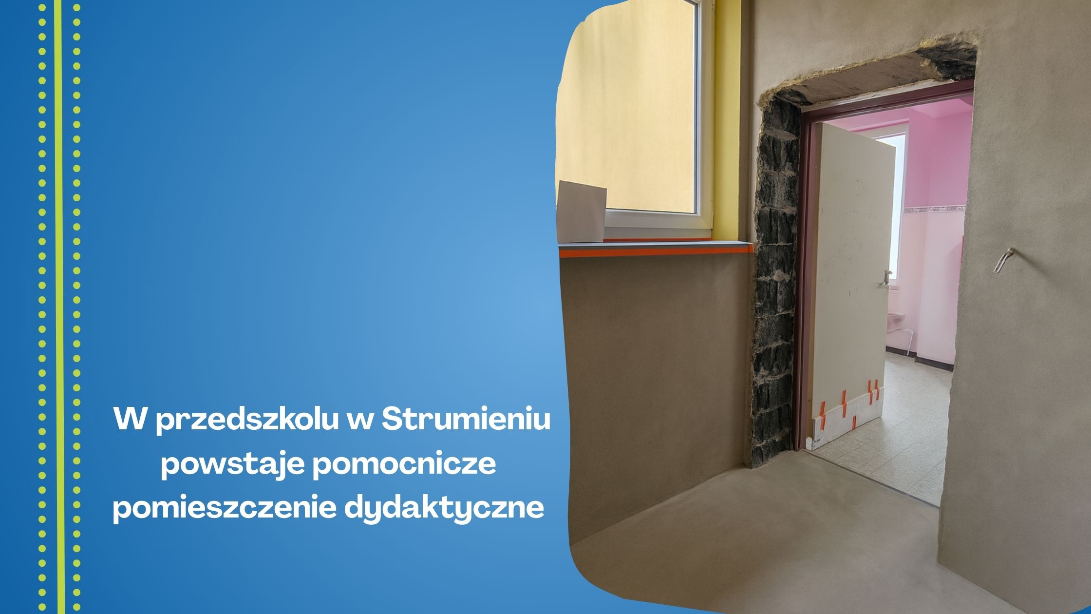 W Przedszkolu w Strumieniu trwa ważna inwestycja, która znacząco wzmocni opiekę psychologiczną nad dziećmi. W budynku powstaje nowoczesne pomocnicze pomieszczenie dydaktyczne – miejsce, które umożliwi najmłodszym spokojne rozmowy z psychologiem, a także zapewni komfortowe warunki pracy z dziećmi ze specjalnymi potrzebami edukacyjnymi.